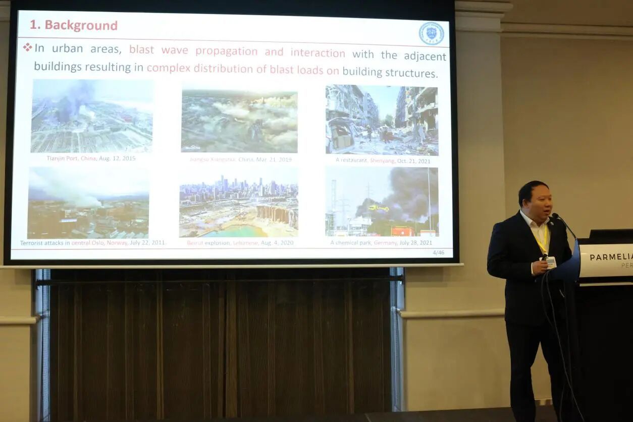 学院院长师燕超教授受邀进行题为《Research on Damage Assessment and Load Inversion Method for Reinforced Concrete Columns after Explosion》的专题报告。报告聚焦成人网 工程结构抗爆防护研究团队在灾后爆炸荷载反演、钢筋混凝土柱爆炸灾后评估及修复加固领域的最新研究成果,为意外爆炸事故建筑结构修复与加固提供科学依据。